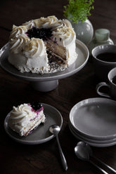 Aus unserer neuen Porzellan Serie: Die ERNST Kuchenplatte in einem glänzenden Sandgrau und sehr feinen Punkten macht jede Fika zu etwas Besonderem.